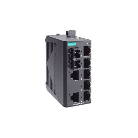 Unmanaged Fast Ethernet switch with 7 10/100BaseT(X) ports, 1 100BaseFX multi-mode port with SC connectors, metal housing, -40 to 75 C operating temperature